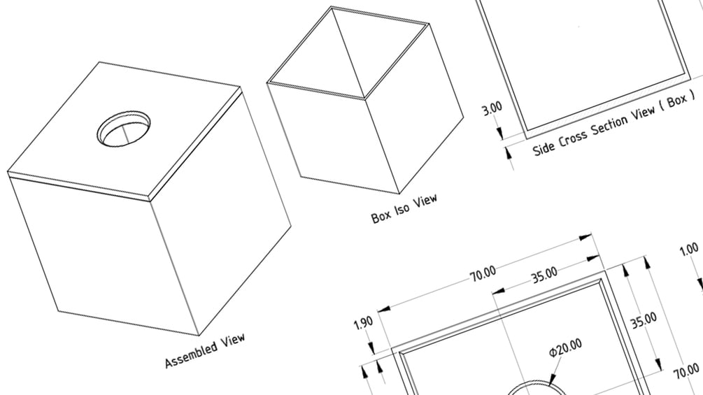 The technical drawing to help you design your own simple little box in Free CAD by following this video: https://youtu.be/AntQAnDFKC8
